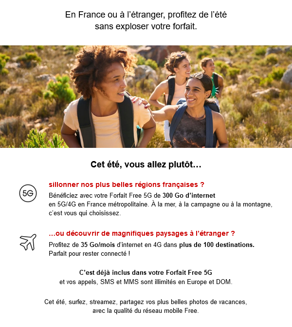 Free Mobile envoie un mail à ses abonnés pour les vacances avec ses bons conseils