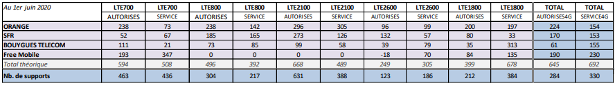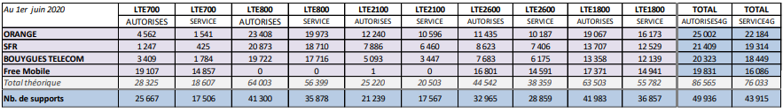 Le bilan des sites 4G mis en service en métropole s’établit comme suit :
