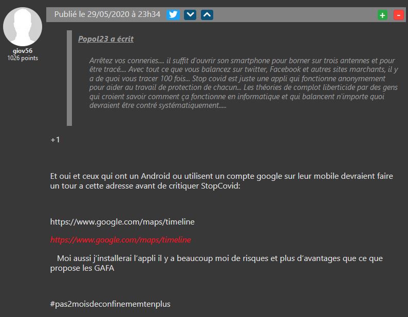 L’application StopCovid fait encore débat, alors qu’elle a été lancée cette semaine par le gouvernement. Le principal problème pour certains étant le fait d’être tracés sur leur smartphone. Ce à quoi certains pragmatiques répondent : vous croyez que vous n’êtes pas déjà tracés ? Et il est vrai que Google a déjà pu utiliser vos données pour établir des tendances pendant le confinement.