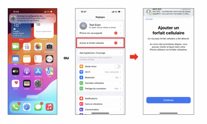 La transformation d’une carte SIM en eSIM est également possible uniquement avec les iPhones XS, XS Max, XR ou modèles ultérieurs mais aussi avec les Samsung A55 5G, A35 5G, S23, S23+, S23 Ultra, S23 FE, S24, S24 Ultra, S24+, Z Fold 5 et Z Flip 5. Autre nouveauté, cette fois à venir, les abonnés SFR bénéficieront du RCS sur iPhone via iOS 18. La bêta 3 de l’OS d’Apple a activé ce protocole pour l’opérateur.