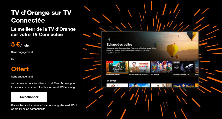 L’application TV d’Orange sur téléviseurs et boîtiers connectés est lancée, avec quelques limites indiquées par l’opérateur.