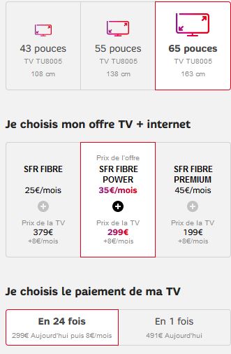 Ici, les tarifs pour le modèle 43 pouces proposé par SFR