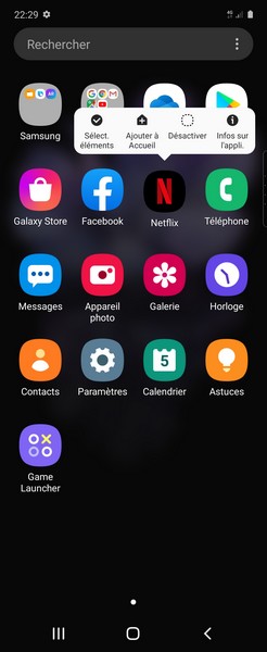 On a quelques applications issues de partenariats commerciaux, dont Facebook OneDrive et Netflix. Elles ne peuvent pas être désinstallées.