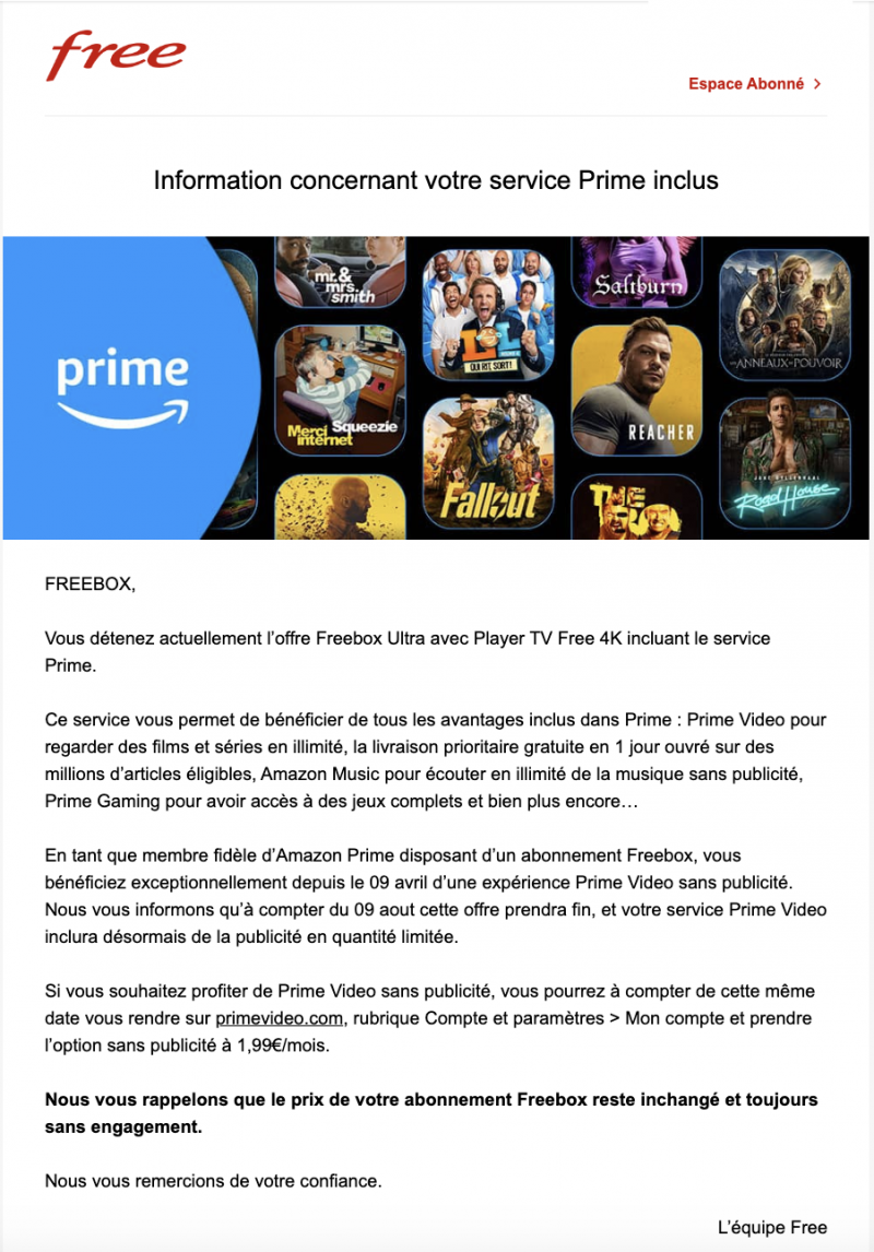 Prime Video sans pub c’est fini pour les abonnés Freebox Delta et Ultra, l’avantage s’arrête aujourd’hui