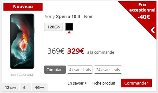 Après le Huawei P40 Lite et le Samsung Galaxy A41, c’est Sony qui lance son nouveau modèle dans la boutique en ligne de l’opérateur de Xavier Niel. L’XPeria 10 II est dès à présent disponible, avec une réduction de 40€.