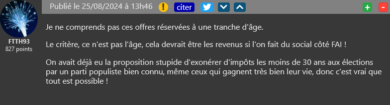 “Des offres Fibre et 5G box flexibles et compétitives pour une connexion rapide, puissante et fiable grâce au WiFi 6”, après avoir lancé en juillet 2023 « l’offre -26 ans » dédiée aux jeunes et composée d’une 5G box ou 4G box avec internet illimité, Bouygues Telecom dégaine élargit cette fois sa gamme dédiée aux 18-25 ans avec une offre Fibre, leur permettant de bénéficier du WiFi n°1 selon nPerf. Celle-ci intègre le WiFi 6 avec un débit allant jusqu’à Gb/s en download et 700 Mb/s en upload, le tout au prix de 24,99€/mois sans engagement mais sans TV. Une clé 4G et 200 Go est mise à disposition dès la souscription et jusqu’au raccordement de la box internet. Ce ne sont pas les seuls à avoir lancé ces offres réservées à un jeune public, mais certains internautes trouvent que la logique derrière ces dernières est discutable. Rappelons cependant que prouver ses revenus est un peu plus complexe que prouver son âge, pas sûr d’avoir envie de fournir ses fiches de paie sur 12 mois pour bénéficier d’une offre télécom…