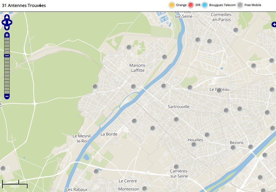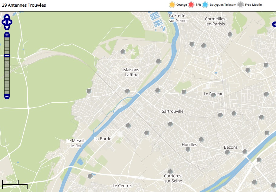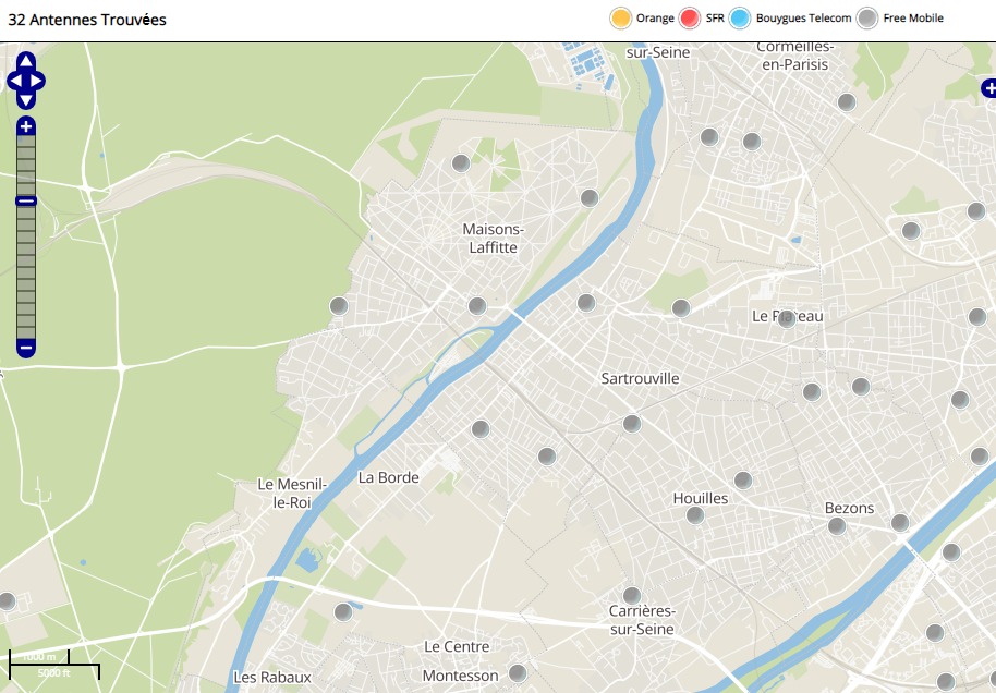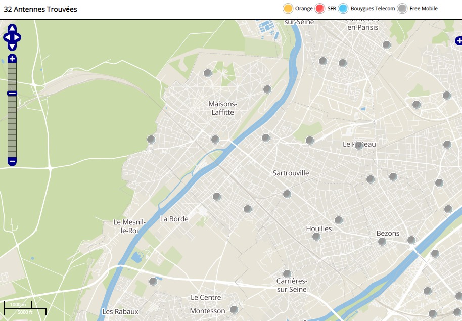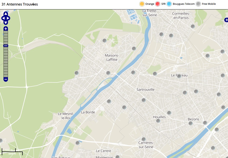 Découvrez la répartition des antennes mobiles Free 3G/4G sur Sartrouville dans les Yvelines