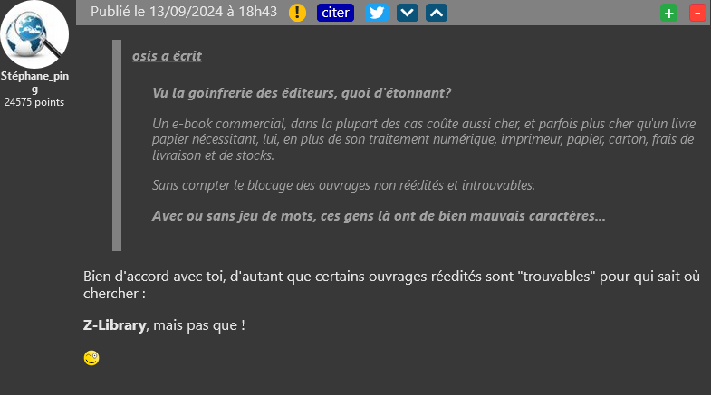 Lorsque l’on pense au piratage en ligne, on pense notamment aux films, séries ou jeux vidéo, mais c’est aussi le cas de livres et de revues scientifiques ou universitaires,qui sont publiées illégalement sur le web. L’une des références pour ce type de contenu est la bibliothèque en ligne Z-Library, qui propose énormément de livres en libre-service et fait l’objet de multiples recours en justice. En 2022, plus de 200 noms de domaines étaient bloqués sur demande Syndicat national des éditeurs et ce 12 septembre, c’est une nouvelle offensive qui a été menée avec plus de cent noms de domaine bloqués par les opérateurs. Si le piratage est illégal, certains voient cependant en cette solution une alternative viable pour des produits jugés inaccessibles.