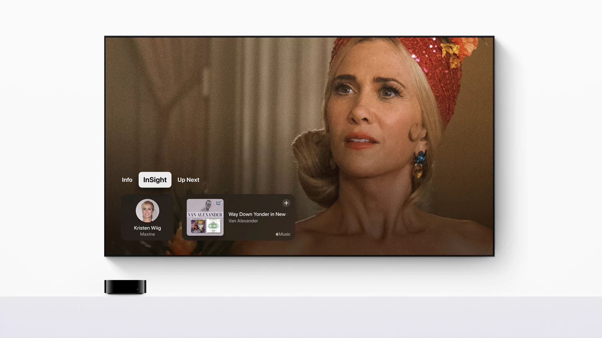 Au rang des nouveautés, la marque à la pomme annonce des fonctionnalités intelligentes comme InSight à l’instar de X-Ray, sur Prime Video, qui affiche à l’écran des informations actualisées sur les acteurs, les personnages et la musique de chaque film et série Apple TV+ en direct en temps réel.