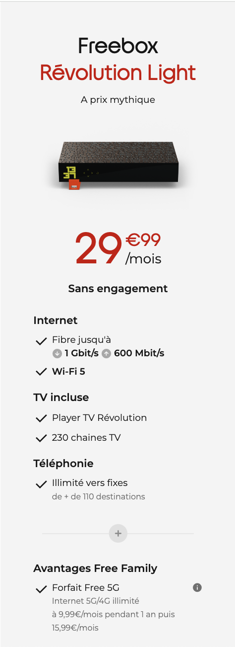 Free met fin à sa promotion sur sa Freebox Révolution Light et revient à un tarif fixe