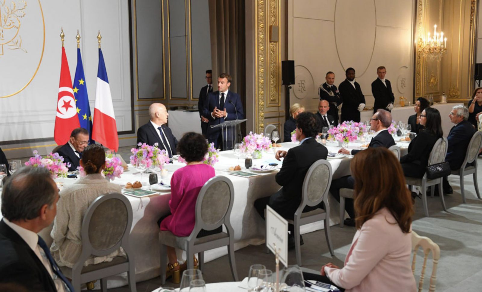 Emmanuel Macron et la Première dame ont organisé ce lundi 22 juin un dîner en l’honneur du Président tunisien Kaïs Saïed en visite à Paris, 24 heures placées sous le signe du “travail et de l’amitié”.