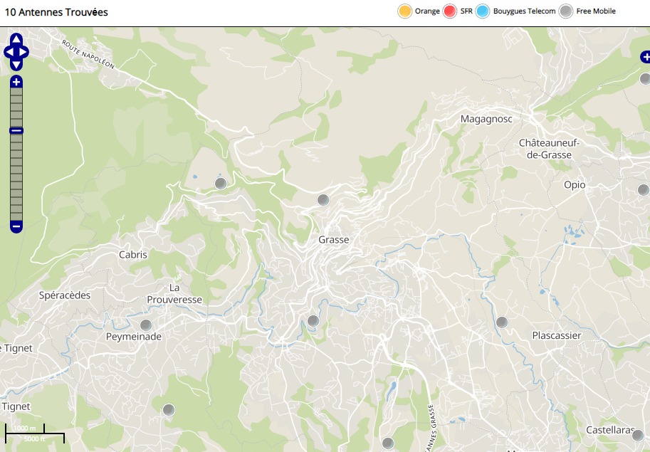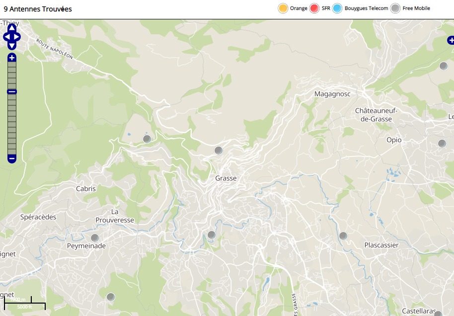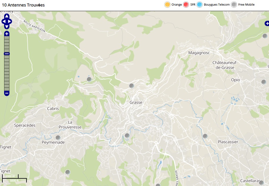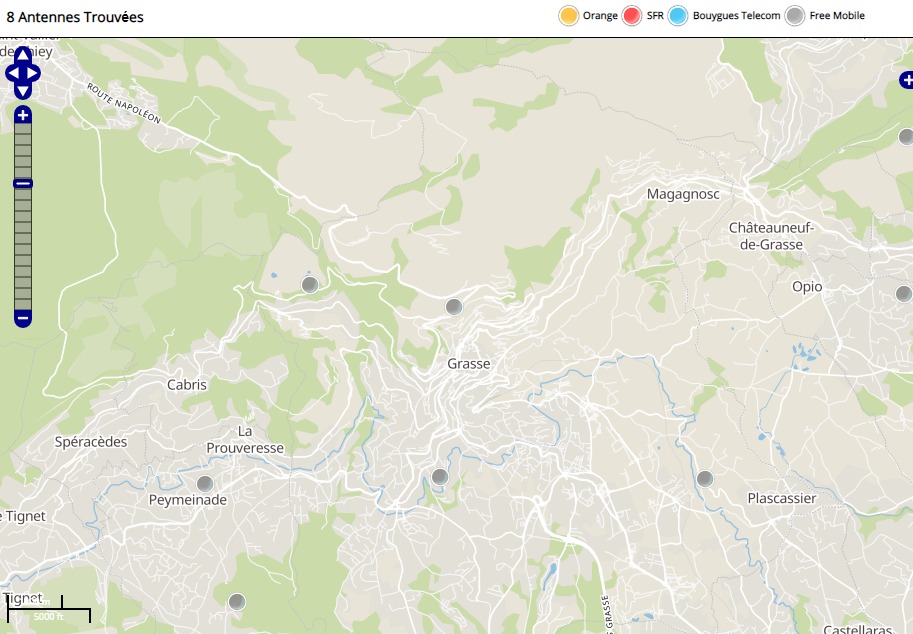 Découvrez la répartition des antennes mobiles Free 3G/4G sur Grasse dans les Alpes-Maritimes
