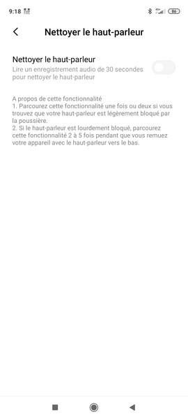 Déjà vu et étrange, on retrouve la fonction de nettoyage du haut-parleur. Pourquoi pas…