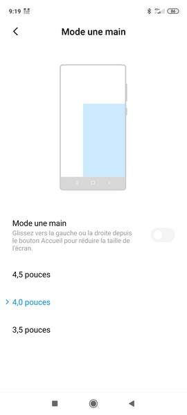 Le mode à une main avec trois diagonales d’affichage (3,5, 4 et 4,5 pouces)