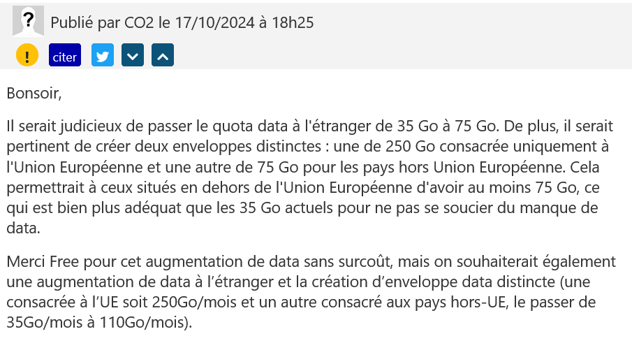 “Votre Forfait Free 5G passe de 300 Go à 350 Go/mois sans surcoût en 5G/4G en France métropolitaine et avec mobile compatible”, annonçait Free Mobile sur X la semaine dernière. Après un passage de 250 à 300 Go en mai dernier, l’opérateur continue d’enrichir son forfait le plus populaire sans augmenter son prix, lequel ne bougera pas jusqu’en 2027. Mais les abonnés Free Mobile en veulent toujours plus.
