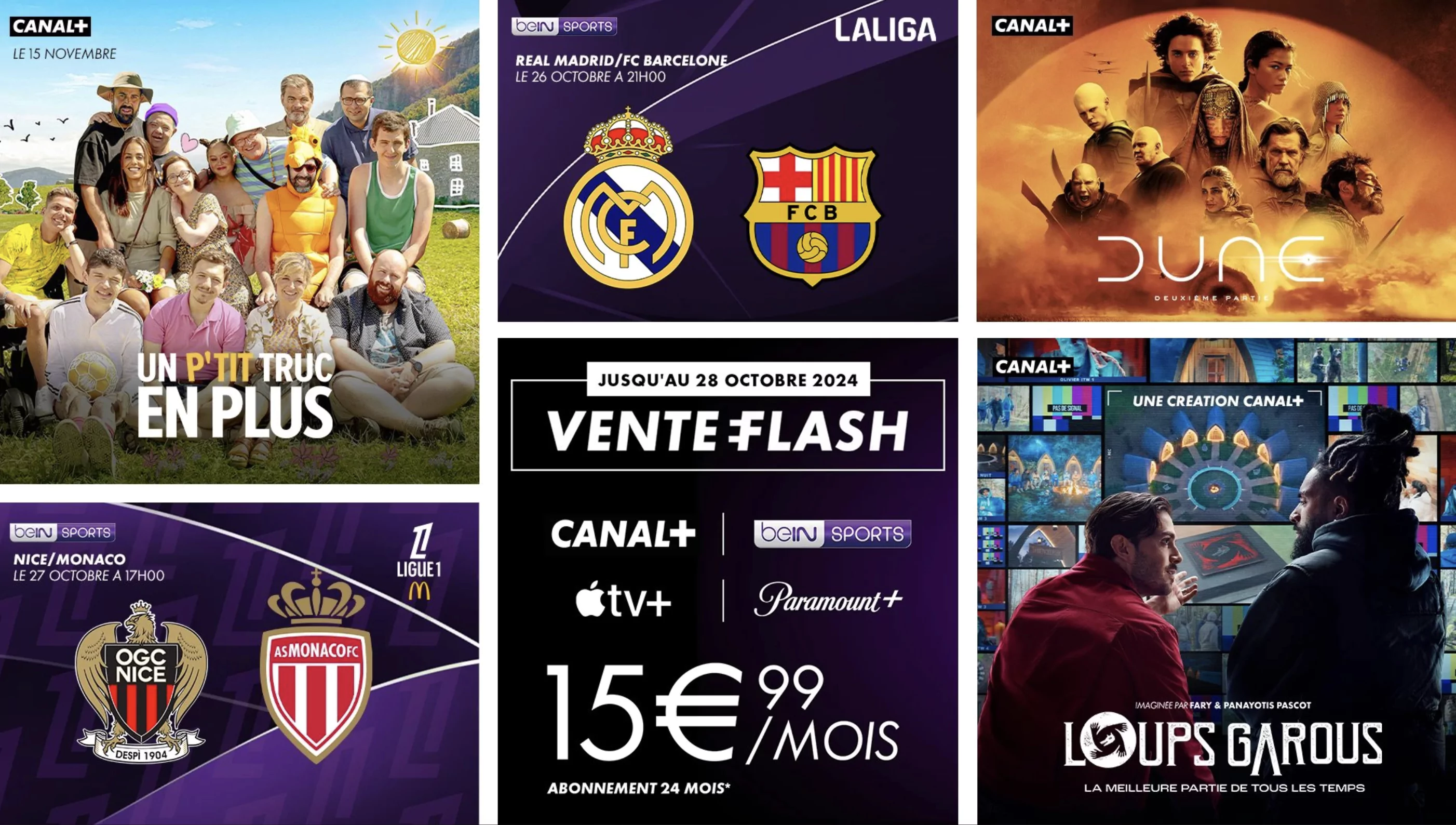 Jusqu’au 28 octobre, Canal+ lance une vente flash à prix cassé disponible sur de nombreux supports comme les box de Free, Orange, SFR et Bouygues Telecom.