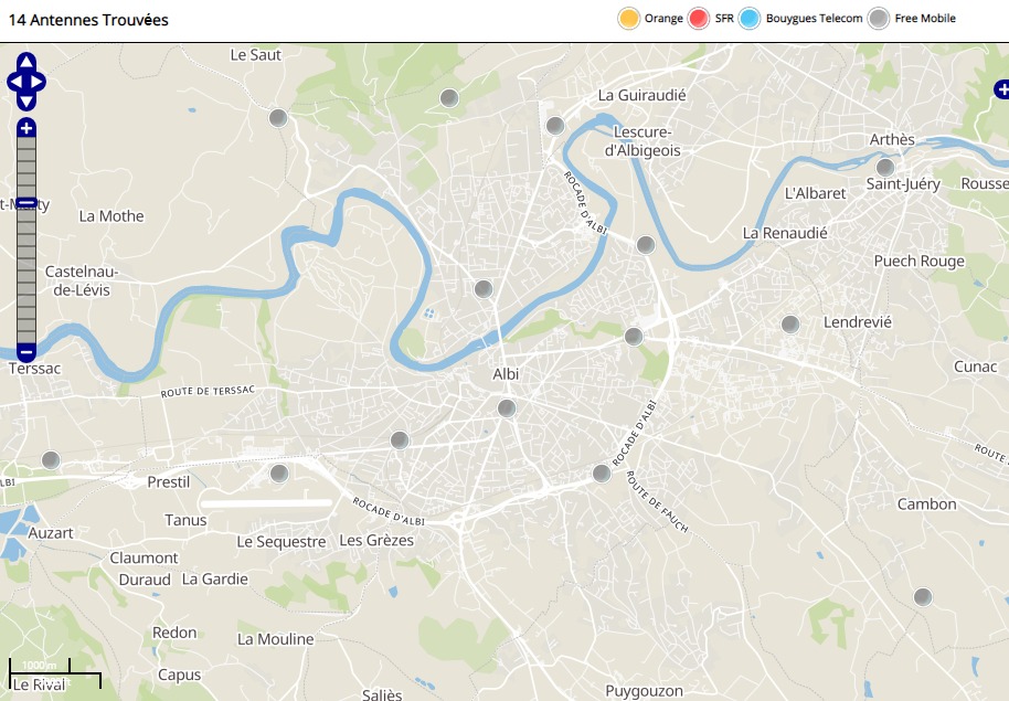 Découvrez la répartition des antennes mobiles Free 3G/4G sur Albi dans le Tarn