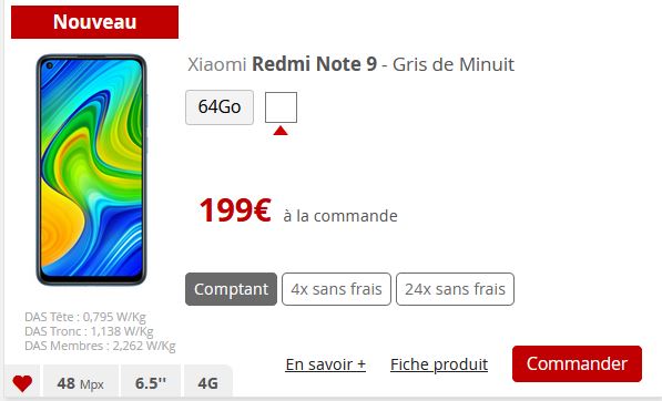 Suite à une nouvelle législation mise en place par l’ANFR, les opérateurs doivent désormais indiquer le DAS (Débit d’absorption spécifique) de chaque modèle de smartphone commercialisé pour chaque zone du corps. Sur le site de Free Mobile, vous pouvez le retrouver directement en dessous des images de présentation de chaque appareil.