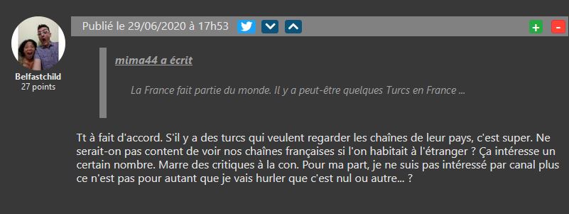 Free a prévenu ses abonnés d’un changement pour le pack Turk. Cependant, certains peau de chagrin se plaignent que les chaînes, qui sont en langue turque, ne sont pas intéressantes. Belfastchild a ainsi un petit message.