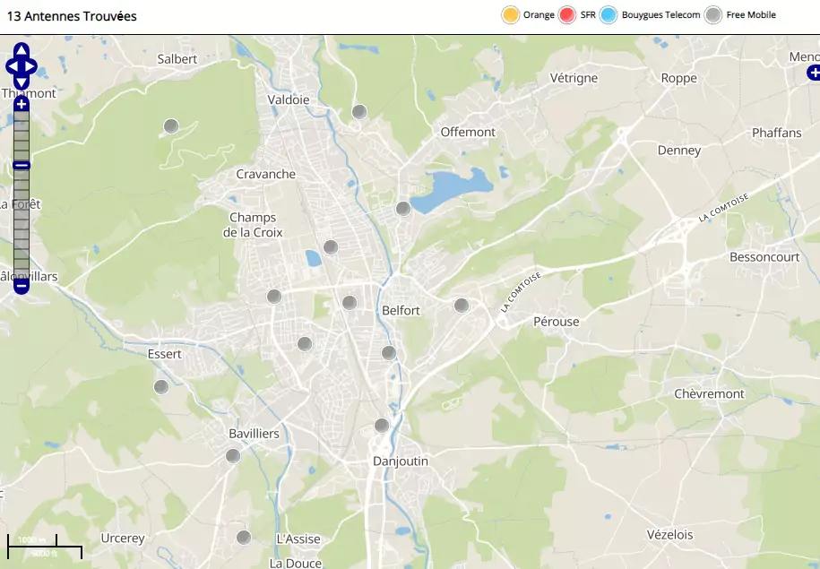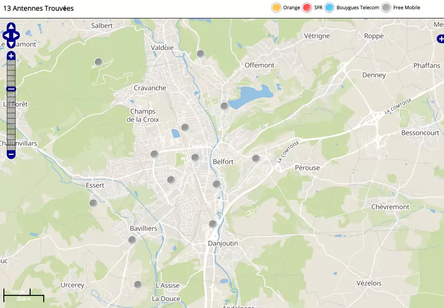 Free a également implanté 8 antennes mobiles 3G dans la ville de Belfort (antennes non-actives incluses).