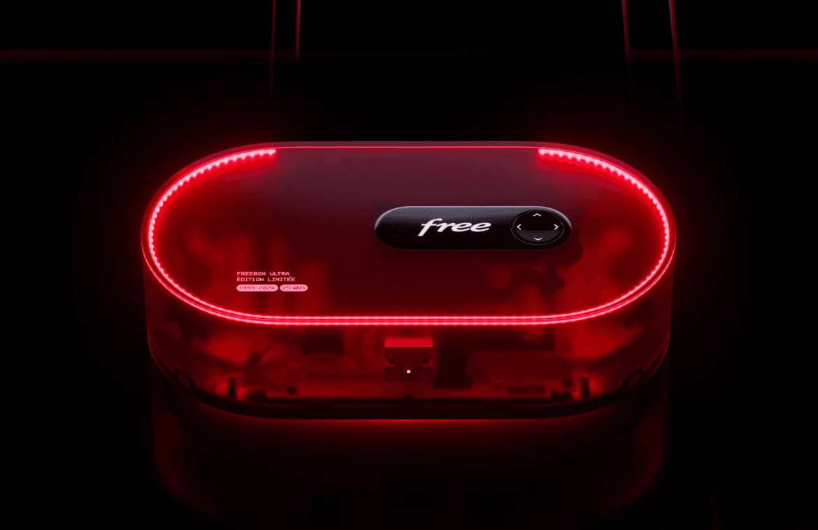 Pour ses 25 ans , Free a décidé de marquer le coup en lançant une édition limitée de sa Freebox Ultra. Disponible ce 3 décembre sur son site internet, cette nouvelle version arbore toujours les mêmes lignes mais se voit totalement relookée. Conçue en plastique transparent, la coque laisse entrevoir les composants et s’avère plutôt tape à l’oeil, grâce à une teinte rouge scintillante mise en lumière par un bandeau LED intégré désactivable qui rappelle les customisations RGB sur les PC. Il est par ailleurs possible de changer l’animation des LED via 6 modes. C’est la première fois en France qu’un opérateur propose une version collector d’une de ses box.