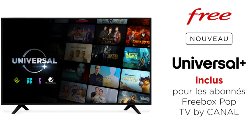 Free nous annonce ce soir qu’il gâte tous ses abonnés Freebox Pop avec TV by CANAL à 44,99€/mois : le service de divertissement Universal+ est désormais inclus avec leur offre Freebox. C’est automatique, sans surcoût et toujours sans engagement.