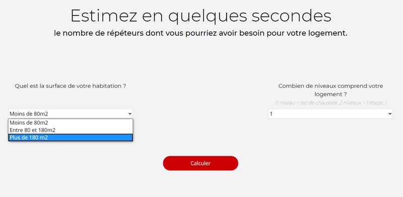 Un peu plus bas encore se retrouve l’outil de simulation qui prend cette fois-ci en compte la présence de différents niveaux. Un premier menu déroulant permet d’indiquer la surface du logement (moins de 80 m², entre 80 et 180 m², plus de 180 m²).