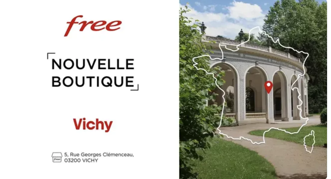 Deux boutiques Free viennent de s’installer à Vichy dans l’Allier, en région Auvergne-Rhône-Alpes et à Rennes.