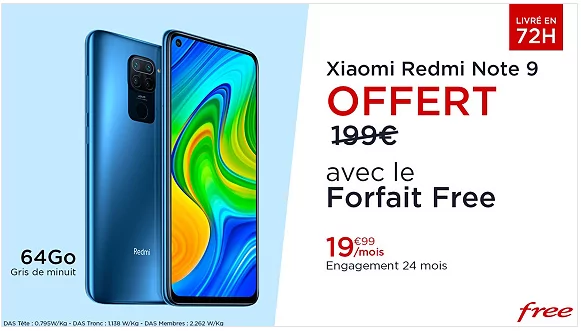 Ce forfait Free Veepee est proposé au tarif habituel, soit 19,99€/mois ou 15,99€/mois pour les abonnés Freebox, avec un engagement de 24 mois. En passant commande sur le site de e-commerce, vous recevrez gratuitement également un Redmi Note 9, 64 Go et coloris Gris de minuit (d’une valeur de 199€). Il s’agit d’un smartphone encore jamais proposé par Free dans le cadre des offre sur Veepee. Vous pouvez retrouver le test du Redmi Note 9 réalisé par Univers Freebox