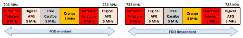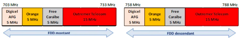 Schéma de la bande 700 MHz en Martinique