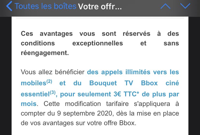 “Vous vous rappelez de Bouygues Telecom qui essayait de me la mettre à l’envers la semaine dernière ? Ben ils sont de retour et non annulable cette fois, depuis quand c’est légal la vente forcée ?” L’annonce d’une modification prochaine de son abonnement Bbox ne passe décidément pour Vilebrequin, un Youtubeur très populaire dans le monde de l’automobile. Force est de constater que l’opérateur de Martin Bouygues use pour la énième fois d’une pratique courante, souvent dérangeante dans l’approche bien que séduisante pour certains clients ouverts à un enrichissement de leur forfait. Cette fois, l’abonné se voit proposer deux nouveaux avantages moyennant l’augmentation de 3€ de son abonnement, à savoir des appels illimités vers les mobiles et le bouquet TV Box ciné, habituellement affiché à 14,99€ (12 chaînes et 1 service de vidéo à la demande). Le tout à compter du 9 septembre prochain sans possibilité de refuser l’offre comme c’est le cas le plus souvent.