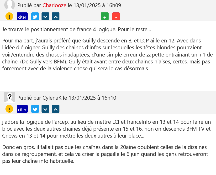 L’annonce tant attendue de l’Arcom a eu lieu aujourd’hui : les nouveaux numéros des chaînes de la TNT à compter du 6 juin 2025 sont connus. On note par exemple que, comme prévu, un bloc d’information en direct a bel et bien été créé regroupant BFM, CNews, LCI et France Info côte à côte dans la zapliste sur les canaux allant de 13 à 16. France 4 décroche pour sa part le canal 4, en remplacement de Canal+. Des changements qui laissent beaucoup d’utilisateurs perplexes.