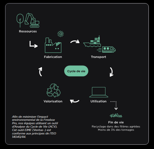 Avec une durée de vie prévue d’au moins 10 ans, 90 % des Freebox Pro retournées peuvent être reconditionnées, à l’exception des cas d’usure extrême. Ces pratiques garantissent un produit durable et écoresponsable, en phase avec les engagements environnementaux de Free Pro.