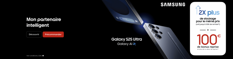 Free annonce également 100 € de bonus en plus de la valeur de reprise pour la reprise de votre ancien appareil et l’achat ou la location avec option d’achat d’un Samsung Galaxy S25, S25+ ou S25 Ultra. Comme pour chaque smartphone commercialisé dans sa boutique, Free Mobile permet d’opter pour sa solution de location avec option d’achat Free Flex qui permet d’étaler le paiement sur 24 mois.