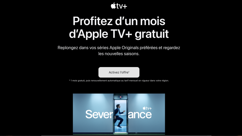 L’occasion idéale de découvrir ou de vous replonger dans les séries phares d’Apple originals, et surtout d’accéder sans frais à la saison 2 de Severance et de Silo. Une nouvelle offre Apple TV+ offert pendant 1 mois est actuellement disponible via ce lien. Attention, le code expire le 30 janvier 2025, il faudra donc faire vite pour en profiter.