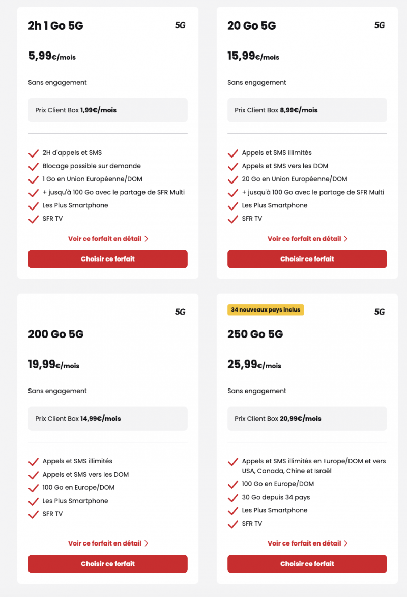 Après avoir inclus la 5G dans toute sa gamme de forfaits mobile pour les professionnels, SFR applique la même stratégie sur ses offres grand public.