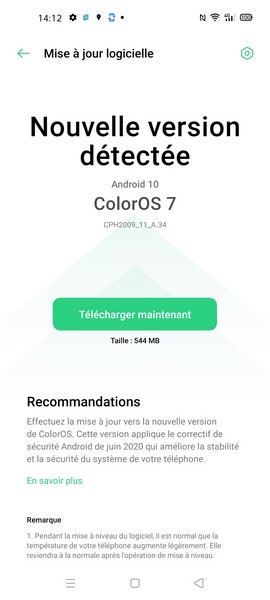 Système d’exploitation : Android 10 avec l’interface ColorOS 7