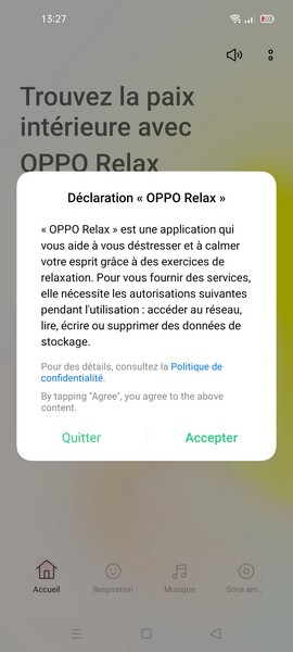 Toujours à propos des applis préinstallées, il y a également Oppo Relax, une application pour se détendre grâce à des exercices. Pourquoi pas.