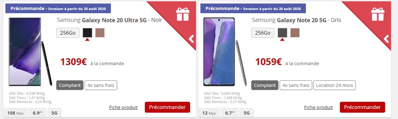 De son côté, le Galaxy Note20 Ultra 5G avec 256 Go s’affiche à 1 309 euros au comptant. Là encore, le paiement en 4x sans frais est proposé (811 euros à la commande, puis 3 fois 166 euros). Le smartphone est disponible en noir ou bronze.
