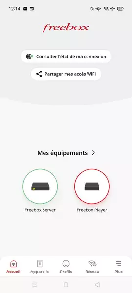 Lancez tout d’abord l’application Freebox Connect, à récupérer sur l’App Store pour les smartphones Android et sur le Play Store pour les iPhone. En haut de l’écran d’accueil se trouve l’option “Partager mes accès WiFi”. Tapotez dessus.