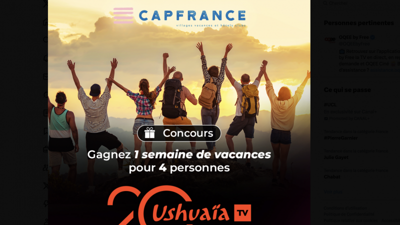 À l’occasion du 20ᵉ anniversaire d’Ushuaïa TV, la chaîne dédiée à la nature et à l’environnement, Free via son service TV Oqee, marque le coup avec un nouveau jeu concours intéressant. L’opérateur vous propose de tenter votre chance pour remporter un séjour d’une semaine dans un village vacances Capfrance pour quatre personnes.