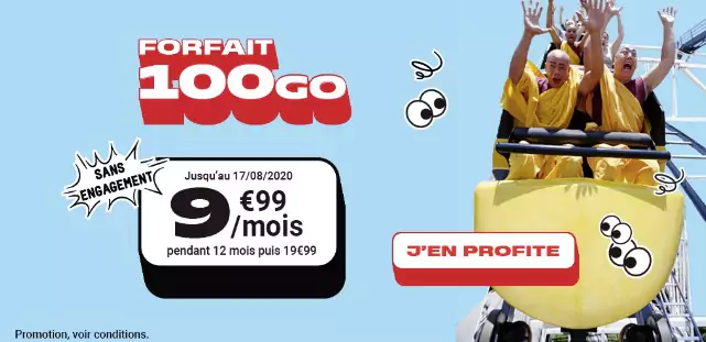 Jusqu’au 17 août, NRJ Mobile propose un forfait mobile en promotion. Celui-ci revient en effet à 9,99 euros par mois, au lieu de 19,99 euros. Notez toutefois que le tarif réduit ne vaut que durant les 12 premiers mois. Payable à la commande, la carte SIM triple découpe revient de son côté à 10 euros.