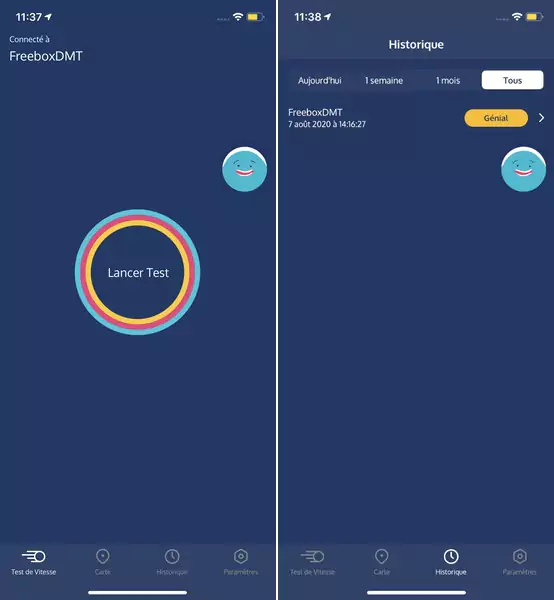 Disponible sur Android et iOS, l’application Meteor fait partie de nombreuses applications permettant de tester la qualité de sa connexion Internet. À l’issue des tests, elle chiffre le débit descendant, le débit montant et le ping, mais indique aussi si la connexion est suffisante pour les applications, celles indiquées par défaut et celles ajoutées par l’utilisateur. Des codes couleur permettent de comprendre rapidement les résultats. Les néophytes peuvent également compter sur un compagnon virtuel que l’on peut solliciter en tapotant dessus pour obtenir quelques explications concernant les fonctionnalités.