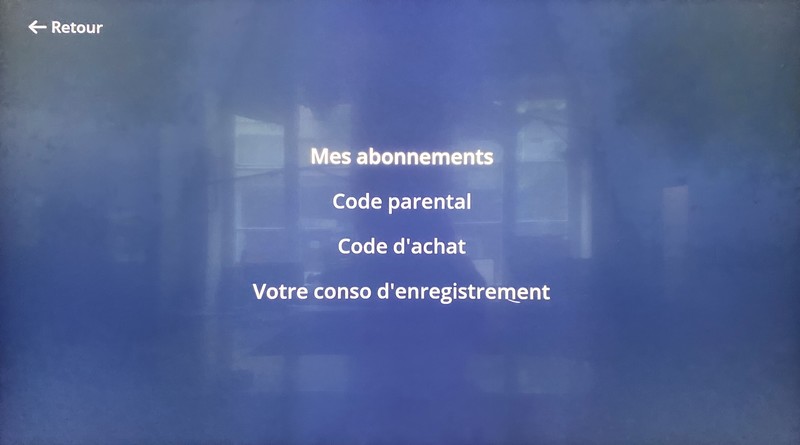 Abonnements et codes : pour connaître ses abonnements, gérer le code d’achat et le code parental ou encore connaître la quantité d’enregistrement TV dans le mois
