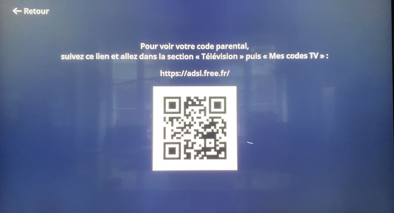 Pour le code parental, vous serez renvoyé vers l’Espace abonné, à la section “Télévision / Gérer mes codes TV (achat et parental)”. Un QR Code à scanner avec le smartphone ou la tablette est aussi proposé pour un accès plus rapide.