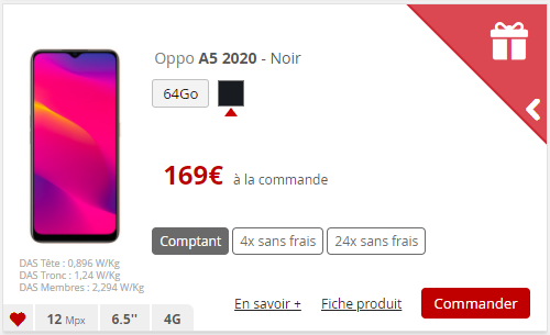 Pour rappel, l’Oppo A5 2020 Pro bénéficie est proposé au tarif de 162€ en paiement comptant
