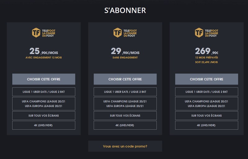 Comme prévu, les abonnements à la chaîne Téléfoot de Mediapro sont désormais ouverts. Pour rappel, trois formules sont proposées, à savoir une formule classique utilisable sur tous les écrans, un pass mobile pour un usage sur le smartphone et la tablette et une formule incluant Netflix. Certains noteront d’ailleurs un bouton pour utiliser un code promo, ce qui laisse entendre la possibilité de faire baisser les tarifs.