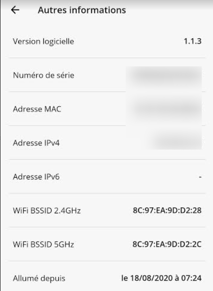 Cliquez sur votre répéteur, vous entrez alors dans une page dédiée aux informations relatives à votre appareil. Rendez-vous dans “autres informations” directement. A noter que si vous n’êtes pas chez vous, il est possible de redémarrer votre répéteur directement depuis votre application via un bouton dédié tout en bas de cette page.