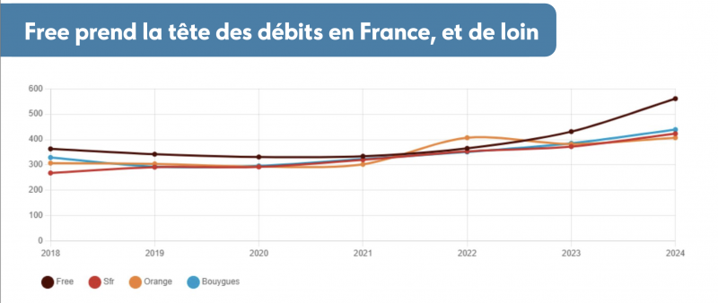 Selon cette étude qui contraste avec le baromètre 2024 de nPerf, non seulement Free domine en termes de débits descendants (561 Mbit/s) mais il surpasse aussi ses concurrents sur les débits montants (415 Mbit/s).