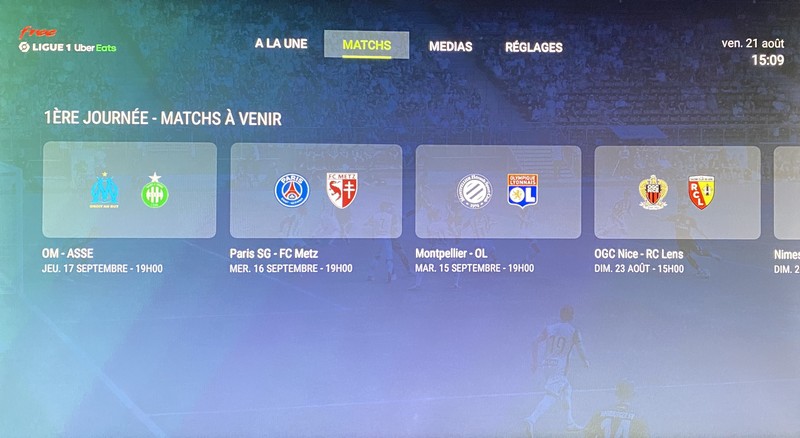 L’application Free Ligue 1 Uber Eats est accessible aux abonnés Free sur les appareils Android et iOS. Vous pourrez la télécharger depuis le Play Store dans le premier cas, et l’App Store dans le second. L’application Free Ligue 1 Uber Eats est par ailleurs disponible depuis l’interface TV des Freebox Pop et Freebox mini 4K, mais aussi celle des Freebox Révolution et Freebox Delta. Notez enfin que l’opérateur de Xavier Niel propose une offre découverte aux non-abonnés Free. Ils auront ainsi accès gratuitement aux extraits vidéo et résumés des deux premières journées du championnat.